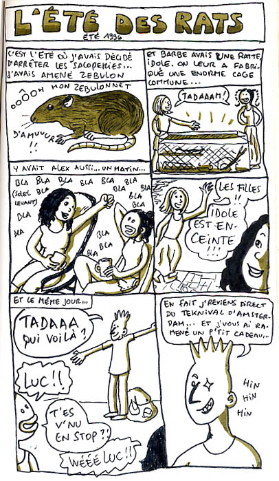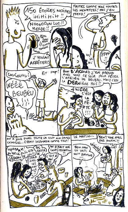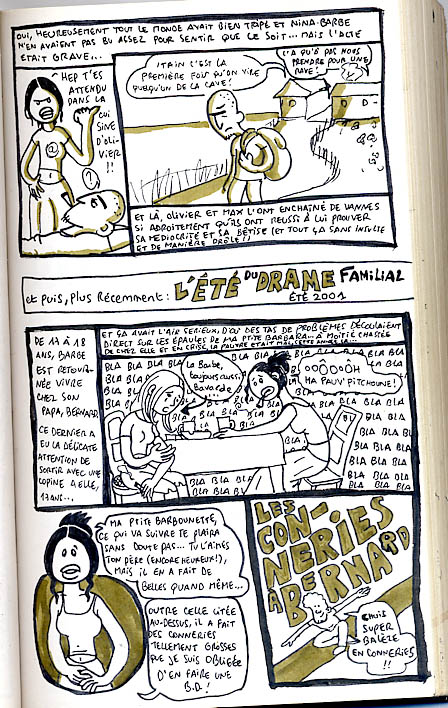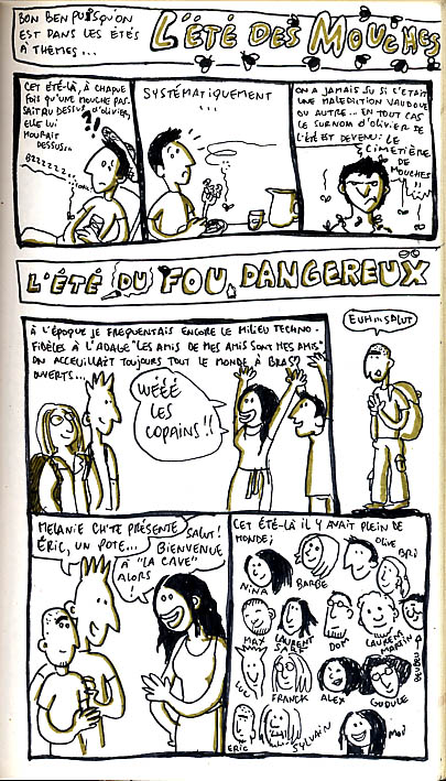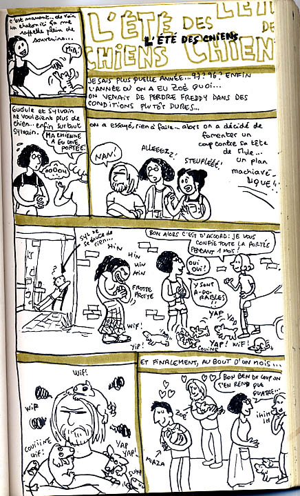 Voilà 11 pages que j’avais faites pendant l’été 2002, qui résument un peu les anecdotes d’été (aussi honteuses soient-elles), à « La Cave », une maison de campagne en Anjou où je passais tous mes mois de juillet…