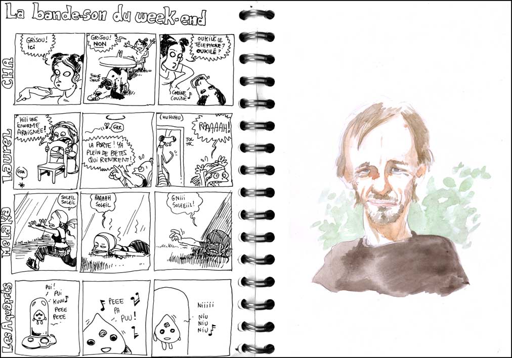 Parce qu’il n’y a pas que mon carnet, d’abord, voici des extraits de celui de Boulet, réalisés pendant nos quelques jours dans les ardennes…