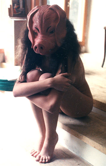 Les photos suivantes ne viennent pas d’un de ses films, c’était des essais pour la couv d’un roman adulte à ma mère, publié par Jean, qui n’était pas que cinéaste mais aussi éditeur, à ce moment-la : « mon âme est une porcherie » de Gudule (je sens que ca va jaser)