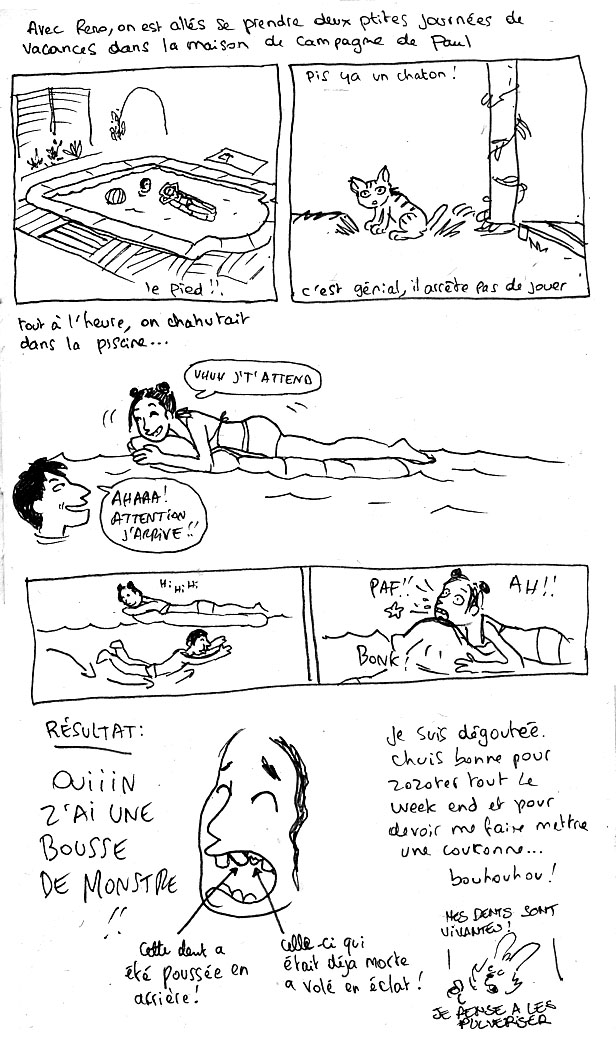 Du coup on a laissé tomber et on est rentrés. Je vais passer mon lundi à tenter de joindre par tous les moyens ma dentiste ou un autre si elle est en vacances. youpi.
