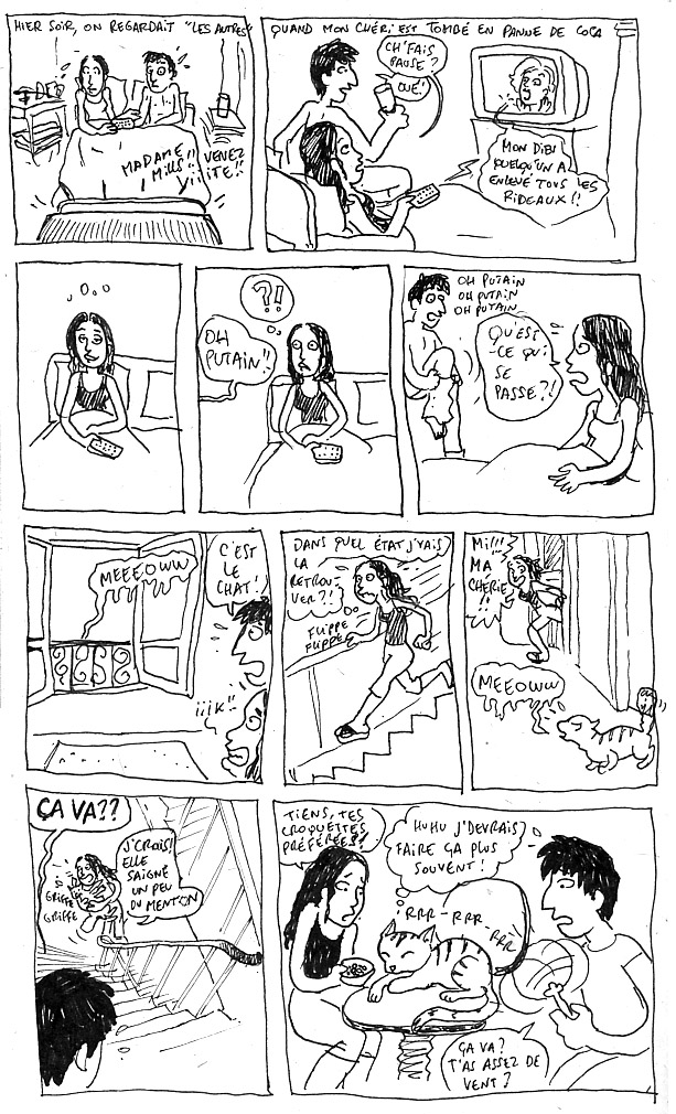 Ah, ça me rappelle la chute de mon chat du 4ème étage !! heureusement, comme ici, plus de peur que de mal !