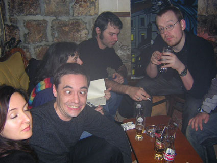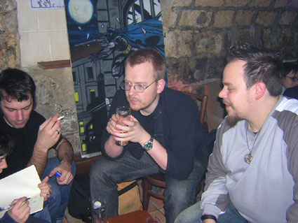 Dans un bar très bruyant, de gauche à droite : Libon, Boulet et Soulman
