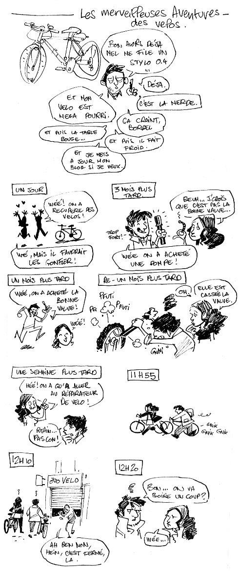 (wé, pour une fois que je peux me moquer !! Autant en dessin, je fais pas le fier, mais en vélo, j’ai un tour et demi de planète dans les pattes (dont deux passages journaliers par la place de l’étoile pendant 10 ans) et même pas mal ! Mouah ah ah ah!)