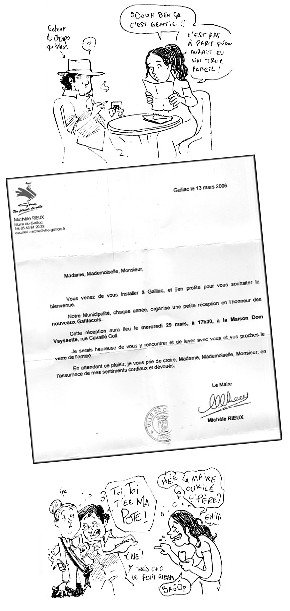 En même temps, il doit y avoir par année plus de nouveaux habitants à Paris qu’à Gaillac ! Dans mon village ils m’ont invité aussi quand je suis arrivée mais c’était plus pour me convaincre que je venais habiter dans le plus beau village du monde et que je devais l’adorer et le vénérer et lui faire de la pub, même s’ils sont tous un peu des gros rustres. C’était rigolo 😀