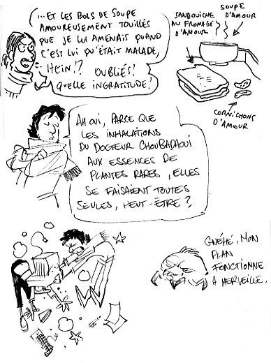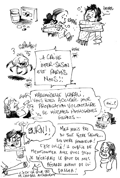 mais c’est à la mode d’avoir la crêve en ce moment ou quoi ? ^_^ – bon rétablissement en tout cas et pis heureusement ça t’empêche pas de dessiner 😛
