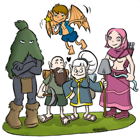 C’est marrant quand j’ai vu ton dessin j’ai tout de suite pensé au Donjon de Naheulbeuk, je sais pas si tu connais. En tout cas c’est quasiment les même persos, en même temps, c’est une parodie de ce genre de jeu alors forcément…