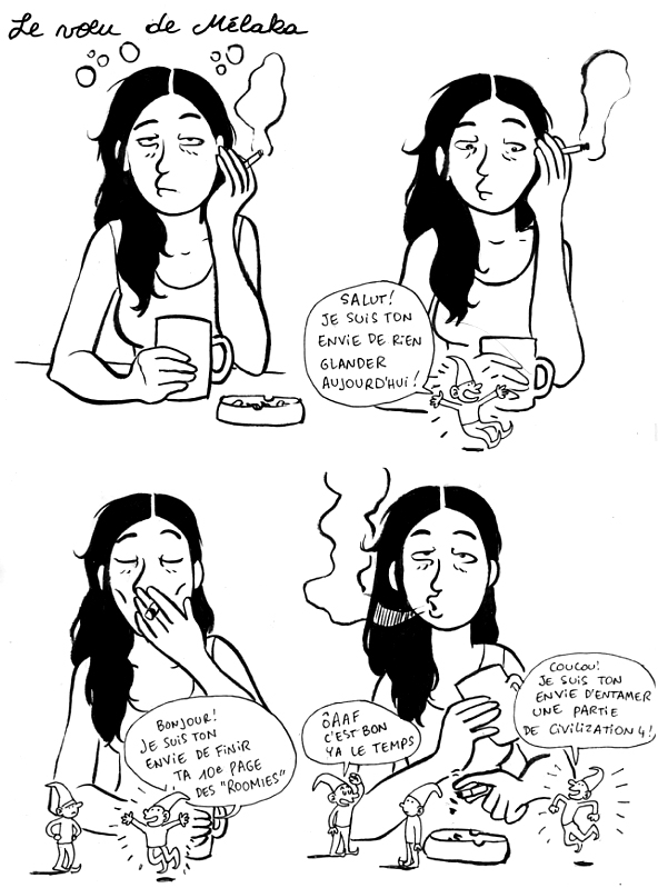 Vrai que cette note est très bien construite. Le personnage de mélaka disparait, va vivre sa vie et laisse ses envies. En lisant j’en ai perdu conscience que c’était vous qui dessiniez. Etrange et très fort sentiment que m’a fait ressentir cette note. Je suis aussi assailli par plein d’envies qui m’empêchent parfois de faire quoi que ce soit…