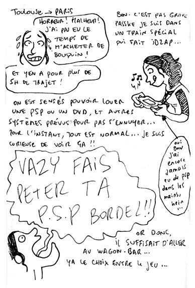 C’est fou le nombre de choses qu’on peut dessiner ou écrire dans un train….alors que ça bouge trop pour ça! erf! :s
