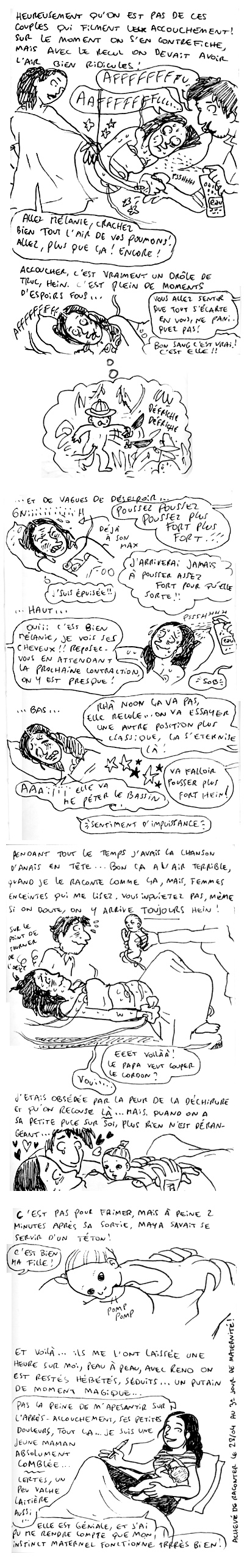 Whaou, c’est merveilleux, félicitations à la maman qui a fait tout le travail, à la petite Maya et au papa aussi bien sûr 🙂 Le dessin avec la petite sur le ventre et les deux parents hébétés et heureux est magnifique 🙂