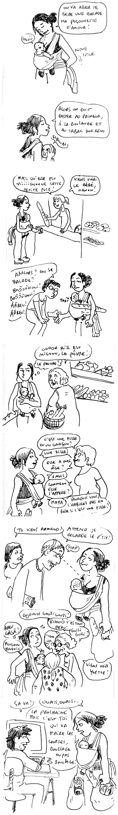"non mais on est pas en Afrique ici!! " (rapport à l’écharpe qui en plus est une méthode de portage indienne!)