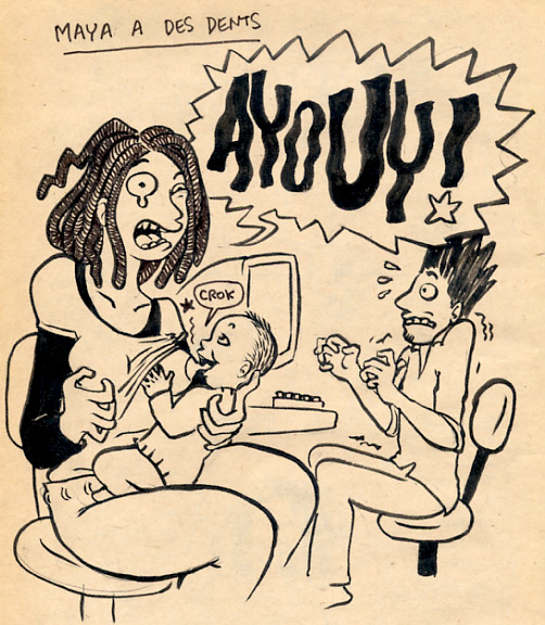 ouh ben je comprends ta douleur, déjà que moi j’ai pas supporté de me faire têter les nibards SANS les dents !!! :o)