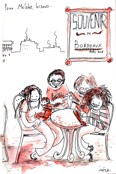 Bon, j’ai p’têtre rien à dire mais ça ne m’empêche pas de mettre en ligne ces trois dessins d’auteurs qu’on ne présente plus (mais que je vais présenter quand même), récoltés durant le salon du livre de Bordeaux :