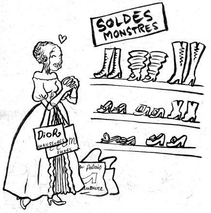 Oh bah oui, vous avez raison, c’est sûrement Cendrillon…Moi j’avais penser à La Belle (de la »belle et la bête ») parce que »soldes MONSTRES »…