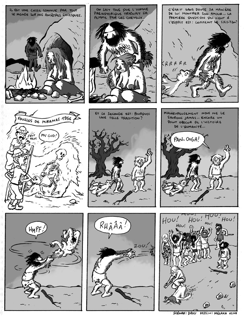 l’homme préhistorique tractait ça femme par les cheveux, sinon le sable entrait dedans ^^