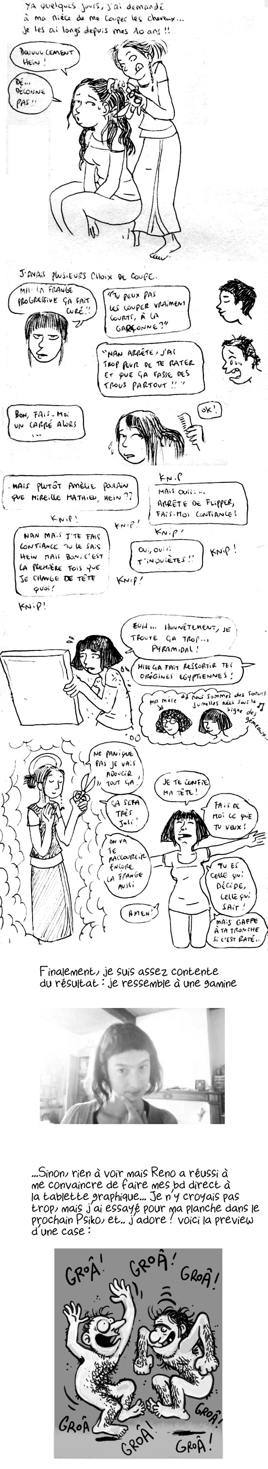 Je trouve que cette coupe te va à merveille et, oui, la frange rajeunit toujours. Bon, sauf Sonia Rykiel mettons… Et puis l’essai à la tablette graphique direct, c’est impec, bravo ! Du coup, (même si j’adore le contact avec le papier) je pense que je vais m’en dégoter une.