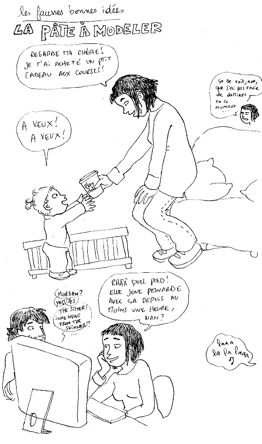 Pourquoi ne pas avoir offert des huîtres au lieu de la pâte à modeler? C’est plus facile à décoller des murs, vêtements, etc, et au moins aussi rigolo pour jouer!