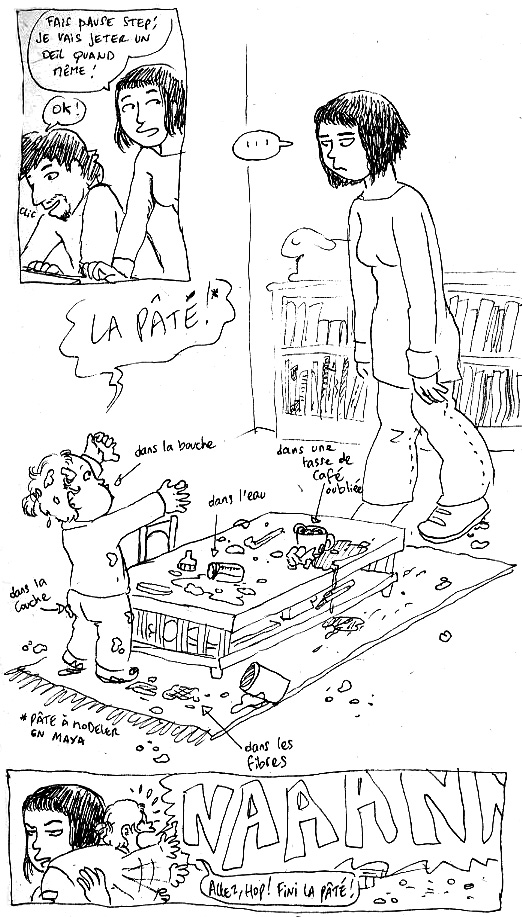 Je suis moi même mère d’un loustic de 3 ans et 1/2 (plus que Maya donc, j’ai l’immense honneur d’avoir plein d’expérience), et donc mon message, c’est : attends quand elle fera de la peinture!!!! Hihihi hohoho hahaha… là aussi, c’est marrant…… c’est marrant jaune, quoi………