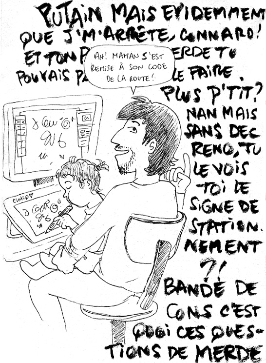Rhaa ! Non pitié le code de la route que tu mets 10 000 ans à apprendre avec leurs questions à la con et que tu oublies un mois après l’avoir eu….