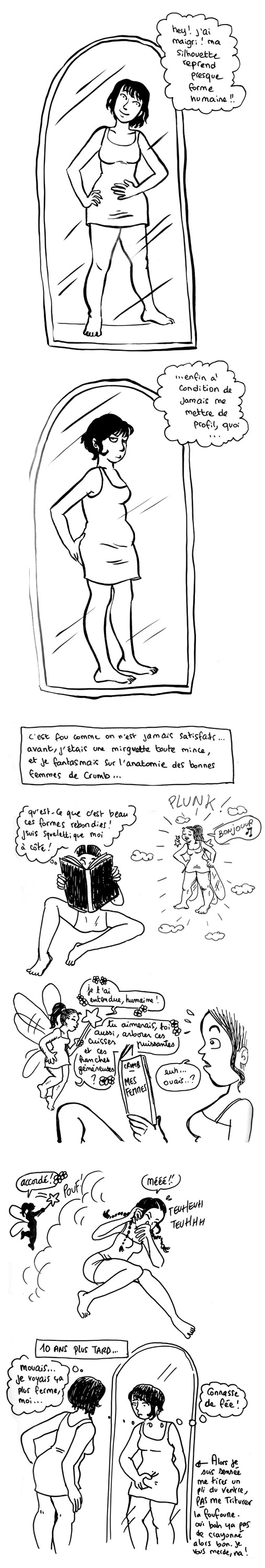 je pense que pere Crumb t’aimerait bien mieux comme ca que toute stek, va. Mais etre ferme c’est toujours bien c’est sur… un peu de velo, beaucoup de fesses ! Bref, je suis sur le point d’accoucher la moi, jai relu ton accouchement illustré, eh ben j’aurais ptetre pas du, ca fait peur ! Ecris-moi !
