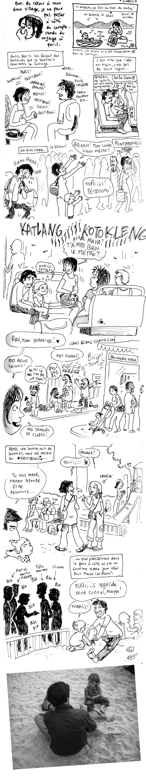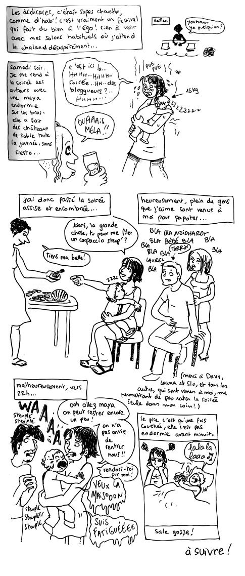 Elle est trop mimoune Maya avec son Papa dans le parc! Si ta BD reflète ton ressenti durant le festiblog, alors ça fait super plaisir de voir que vous vous êtes éclaté…bon enfin pas sur la fin mais bon c’est les aléas des enfants^^. On les aime pour ce qu’ils sont