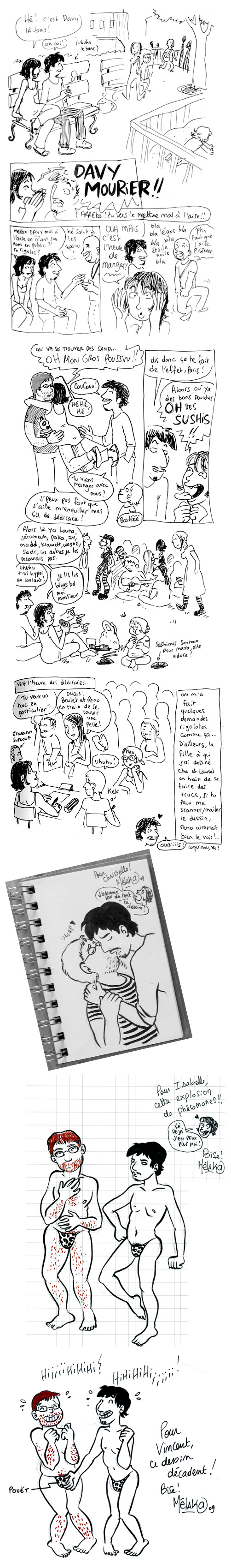 Pfiou, j’étais là pile au bon moment alors : j’ai vu en direct la dédicace des strings et celle de Cha et Laurel en train de faire des cochonneries ^^ (J’étais dans la file de Kek juste à côté ^^)