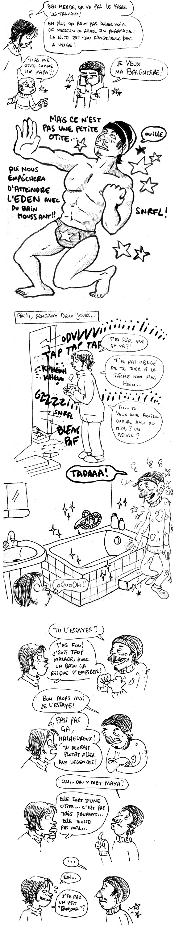 Eh bé… j’espère que vous allez tous mieux, et que les oreilles vous laissent tranquilles pour que vous puissiez profiter de votre baignoire vus les efforts fournis!
