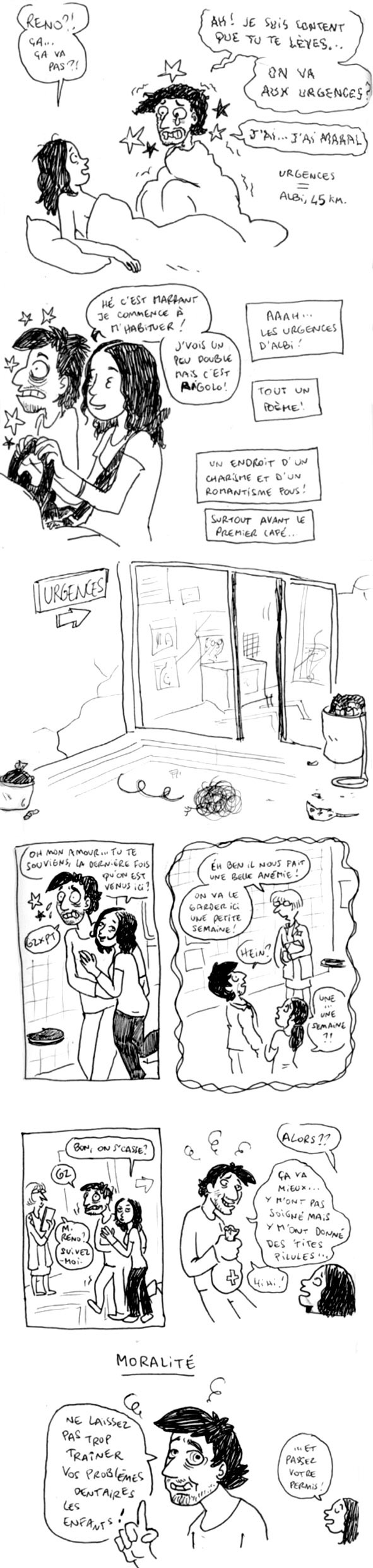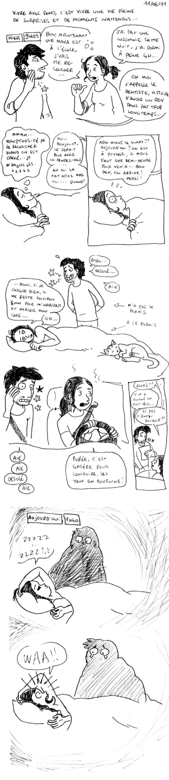 Ingrid > En fait Reno espérait secrètement qu’ils lui arrachent tout le bazar aux urgences, mais à l’hopital d’Albi ils n’ont pas de matos ou de service dentaire.. Du coup oui on aurait pu aller mendier chez toi ! mais là c’est bien parce qu’il lui en fallait un pacton pour tenir jusqu’à son vrai rendez vous chez le dentiste vendredi prochain..