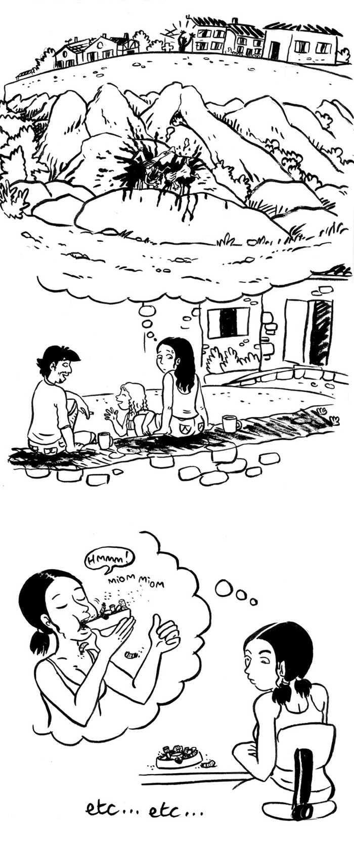 Han! c’est dingue! je pensais pas que c’était fréquent ce genre de pensée..dans mes best-of j’ai le doigt dans le mixeur plongeur, la main sous la ponceuse, la main qui se fait couper quand je la passe par la fenêtre de la voiture…en fait j’ai un problème avec mes mains je crois…merci en tout cas pour tes supers dessins!