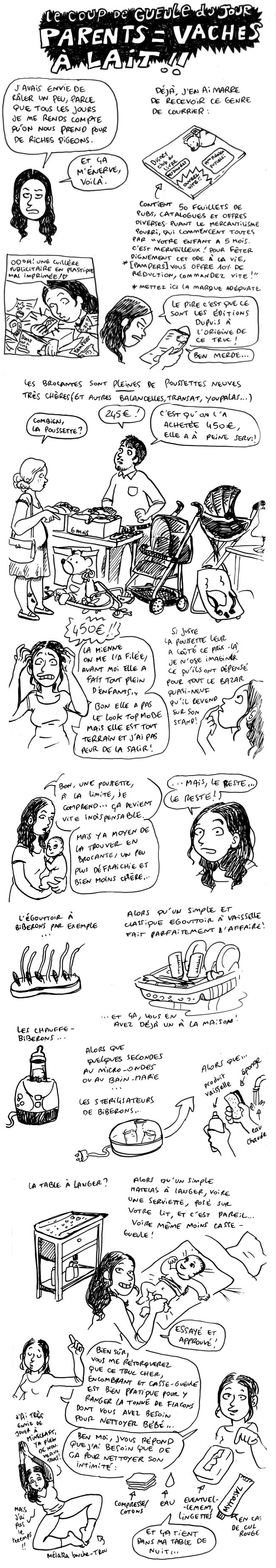 En tant que maman célibataire et radine d’une petite fille de 7 mois, ça fait plaisir de voir que je ne suis pas la seule à avoir des envies de meurtres quand on m’explique que le-coussin-qui-fait-de-la-lumière-et-retranscrit-les-bruits-intra-utérins est absolument INDISPENSABLE si je veux que ma fille se développe/ne devient pas psychopathe/ait son Bac avec mention…