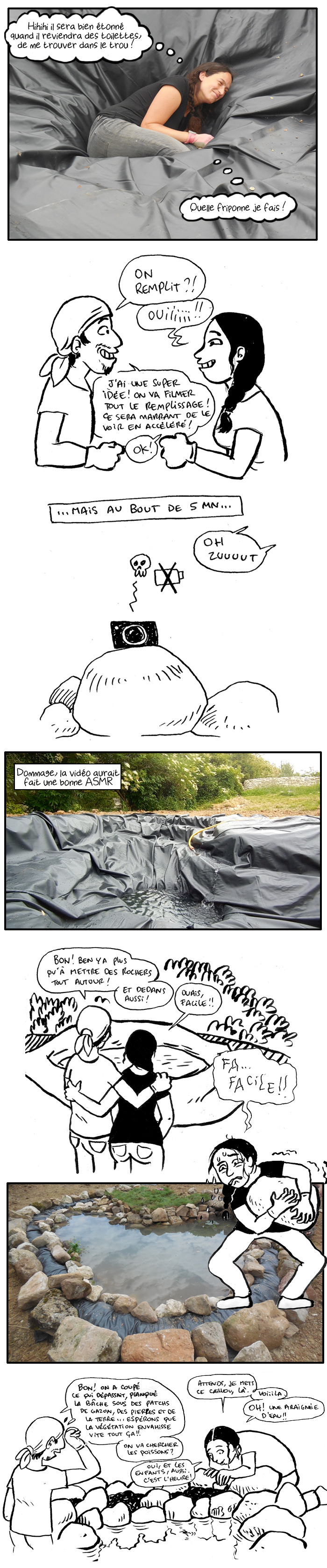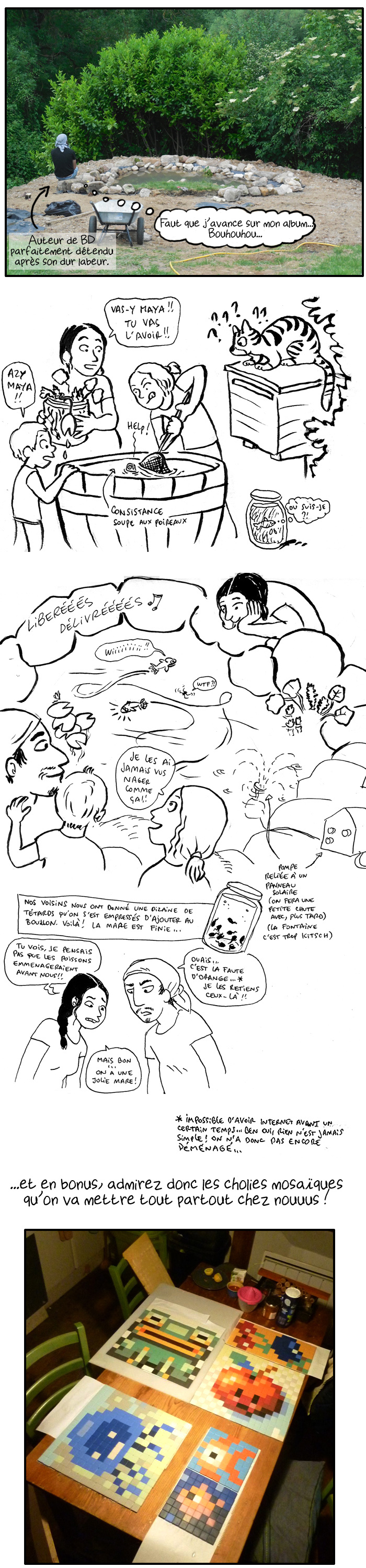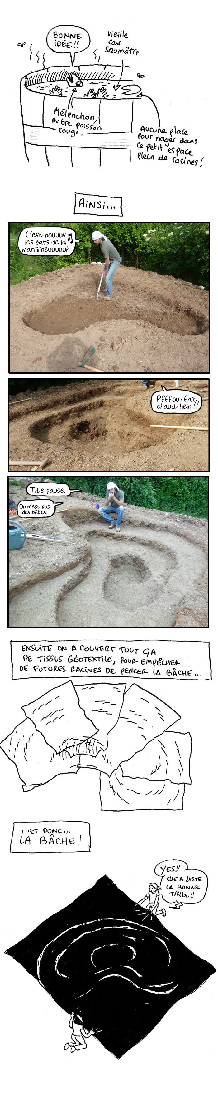 Oh là là le boulot de fou!! Bravo pour la mare, elle a l’air géniale! Mais, euh… vos dos, ça va? ^^ et que Reno ne s’en fasse pas, nous on l’aime! J’ai d’ailleurs cru au début que le comm’ de « déçu » était de l’humour (hum) et j’attendais un lol à la fin… mais non… certaines personnes sont vraiment incroyables!!! Que Reno fasse ce qu’il veut, hein, et surtout s’il s’agit de sa maison! On ne peut pas dire que vous êtes des feignants, l’un et l’autre^^