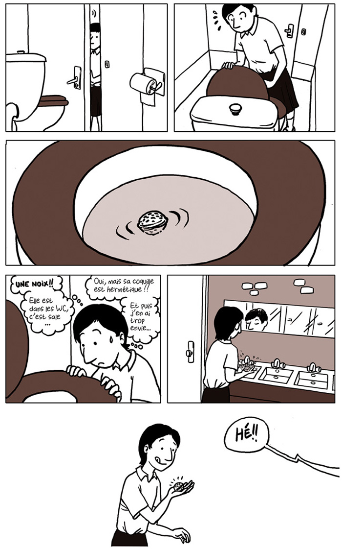 Ce qui veut dire que la demoiselle à la noix est sortie sans tirer la chasse? Ah ben c’est du propre !