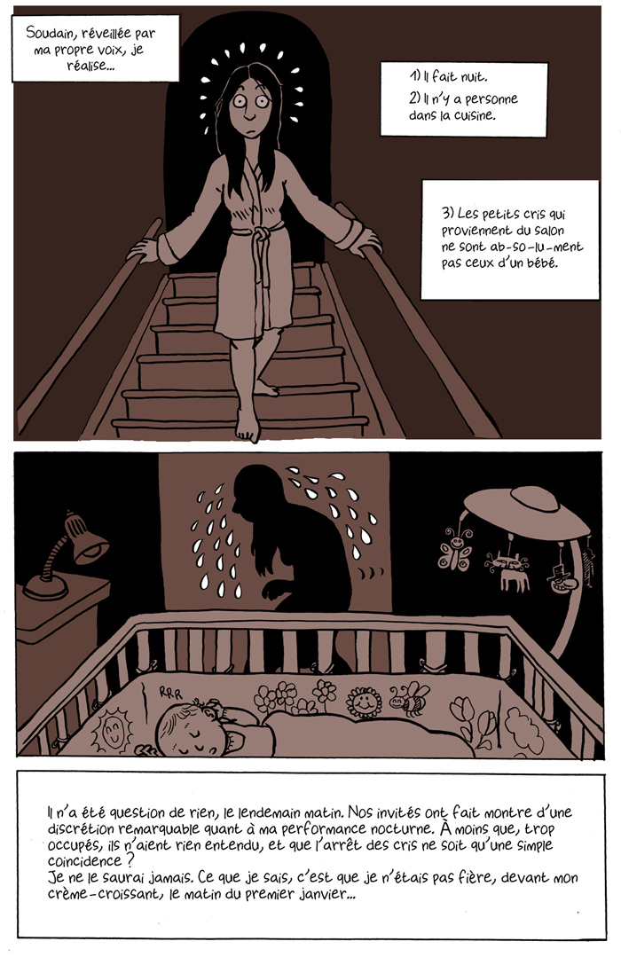 @ N. : taxer Gudule ou Mélaka de sexisme, c’est comme concéder de l’empathie à Gœbbels. Vous avez mal lu le texte d’origine qui disait : « Michel P., un copain dessinateur, était venu passer le réveillon avec nous, en compagnie d’une créature de rêve qu’il avait levée pour l’occasion. »