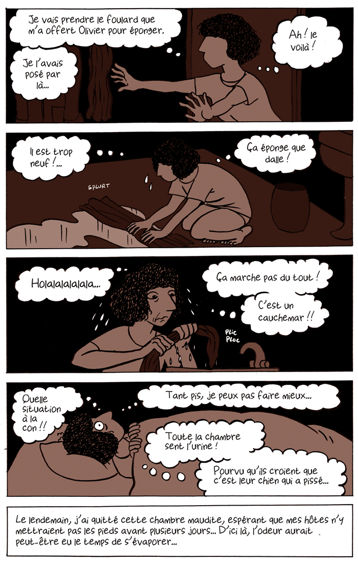 Sinon, c’est vraiment une situation à la con, perso j’aurais pissé dans le lavabo directement, voir par la fenêtre, doucement…