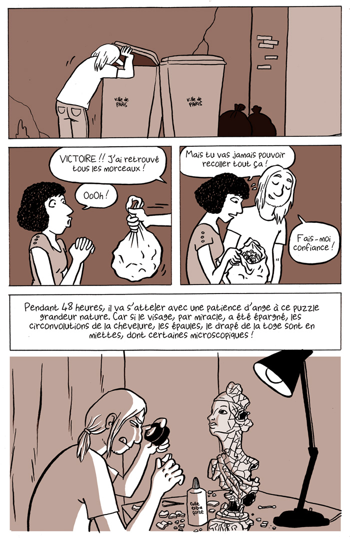 Ca commence comme un gag de Gaston Lagaffe (quand il achète pour Mademoiselle Jeanne un vase chinois avec un dessus de chope de bière, qu’il la casse par maladresse, et lui offre comme puzzle 3D), et ça finit comme un autre gag de Gaston.