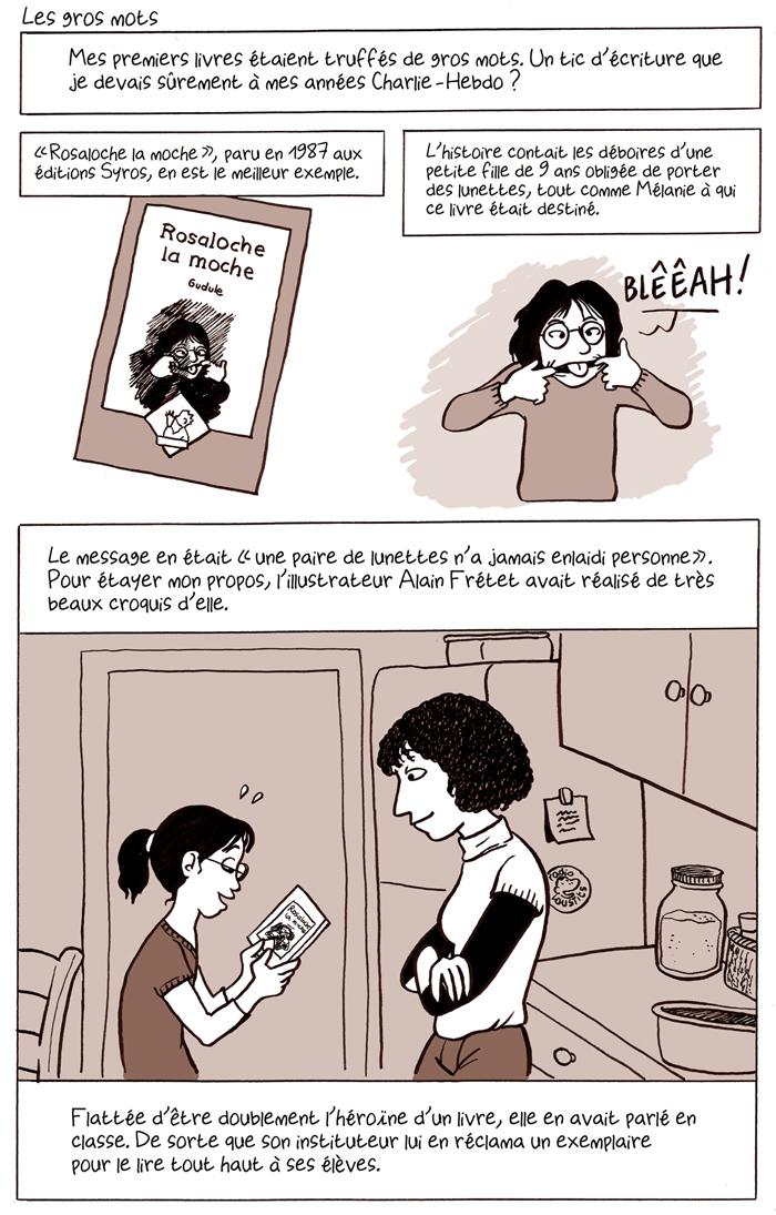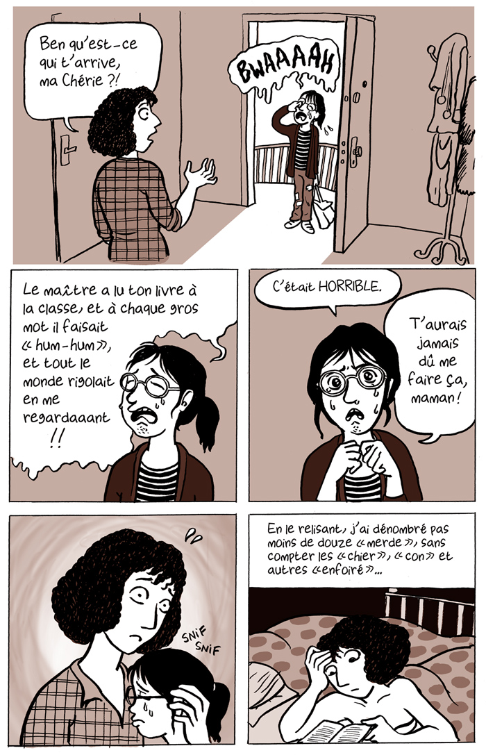 Cela étant, l’instit était quand même vraiment vache (et pas sérieux). La moindre des choses aurait été de le lire pour lui-même d’abord, et dans ce cas soit il aurait finalement décidé de ne pas le lire devant la classe, soit il aurait « passé » sur les gros mots. Si il ne voulait pas prendre le temps de lire le livre avant, il aurait dû assumer sa flemme (et ne pas les souligner, voire les escamoter).