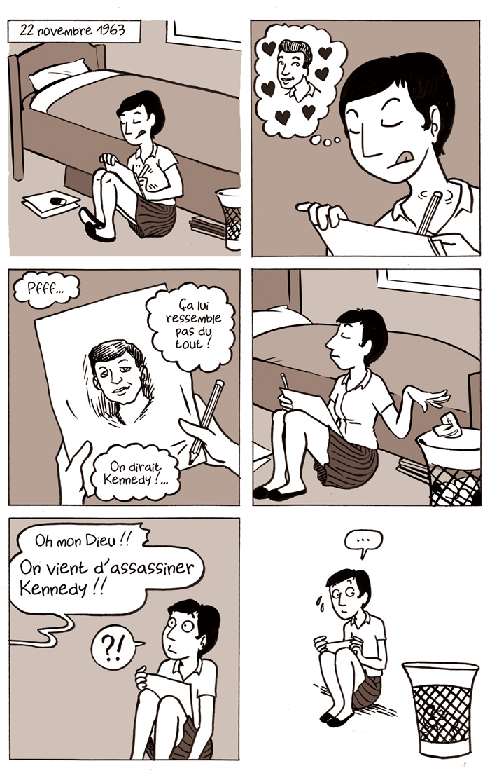 euh.. sinon, c’est qui qui se demande qui qui dessinait qui ? Kennedy ? C’est pour ça qu’on l’a tué ? C’est mérité !