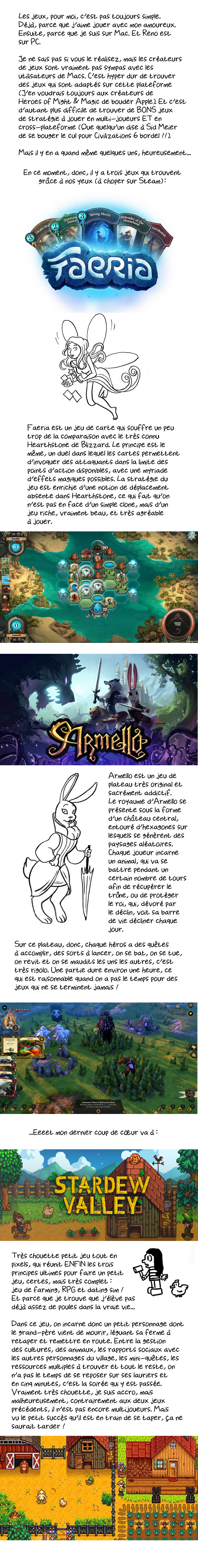 En fait, je disais que, pour Heroes of Might & Magic, il existe des versions Mac, peut-être pas le dernier (me suis arrêté au V et, au final, je n’ai véritablement joué qu’aux trois premiers).
