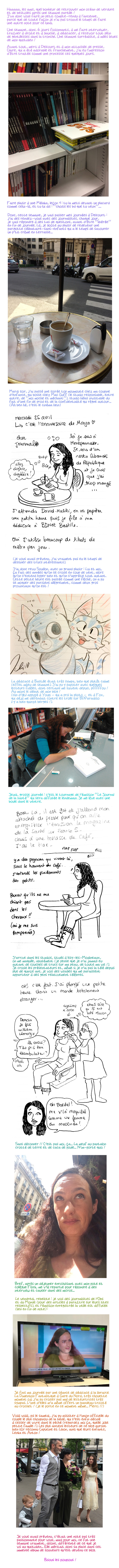 Bref, j’ai acheté votre livre samedi, et après le déchirement d’avoir dû m’arreter de le lire samedi soir (trop crevee), je l’ai fini directement dimanche! Impossible de m’arreter, j’ai adoré. Alors je me suis décidée a vous écrire pour vous féliciter pour ce travail, pour votre courage tant au moment de la maladie pcq je sais bien a quel point c’est difficile d’assurer comme vous avez pu le faire, et pour le partager avec tout le monde! Bref, je suis pleine d’admiration!