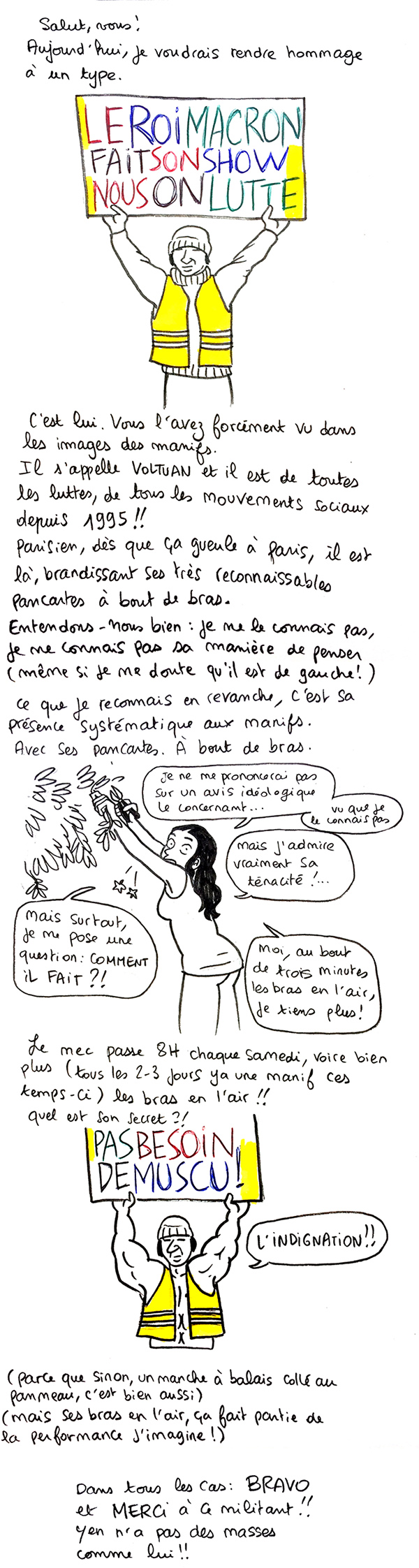 Je le connais. Je l’ai vu à une manif CGT, à la nuit debout, à la fête de l’huma, et à la mad pride. A Paris ce mec c’est une star.