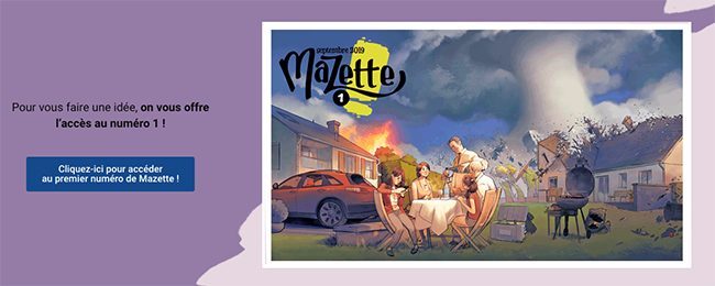 Sinon, sachez, chers lecteurs et chères lectrices, que nous avons mis à disposition, pour ceux qui le veulent, le numéro un de Mazette en lecture libre ! Pour ceux qui hésitent à s’abonner sans savoir de quoi il en retourne…