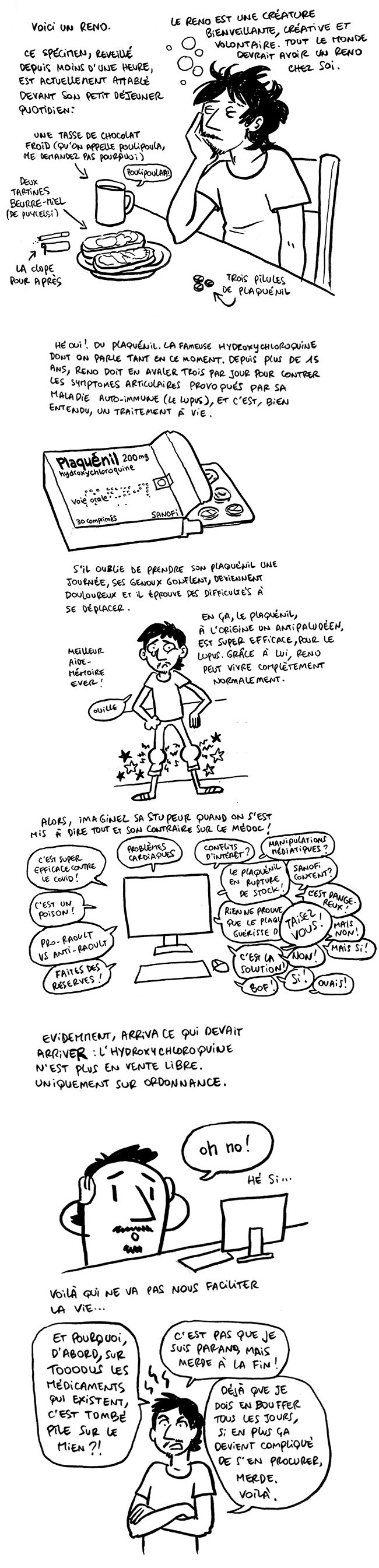 Mais dès que l’escroc mégalo marseillais a recommandé à tout le monde d’en prendre, j’ai tout-de-suite pensé : ça va être une catastrophe pour tou·te·s celleux pour qui ce médicament est vital (maladies articulaires en France, paludisme en Afrique). Je suis triste que cette crainte s’avère (même si je préfère que ce soit sous cette forme plutôt que sous celle, dramatique, d’une rupture de stock).