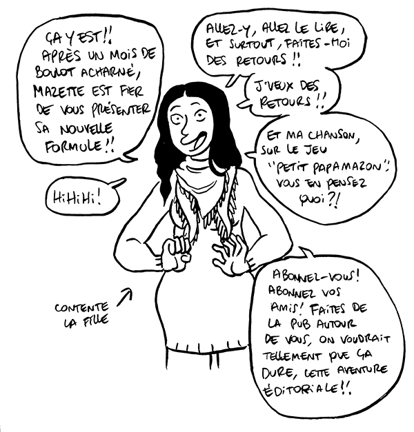 Pour ce qui est de la chanson Papamazon, j’avoue n’arriver à comprendre qu’une partie des paroles. L’effet électronique fait que j’ai beaucoup de mal à suivre certains couplets. Ce que j’en comprends est très bien vu (et ça a dû être marrant à enregistrer avec les enfants), je suis frustré de ne pas tout comprendre.