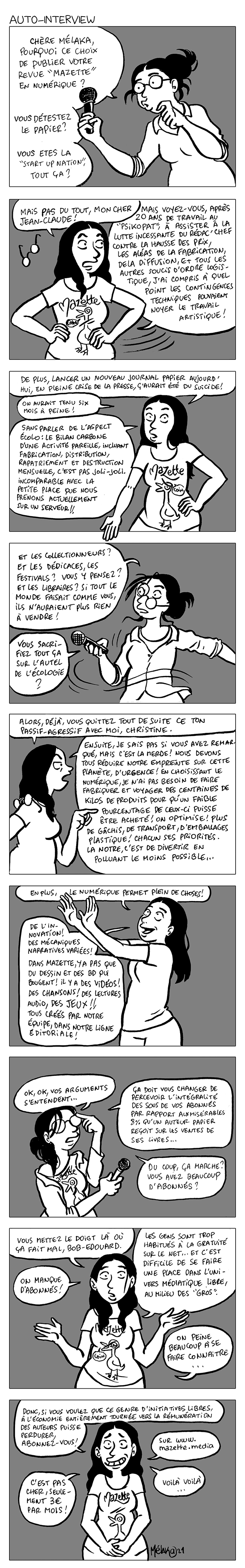 Cette semaine, et pour la sortie du n°19 de Mazette, ce sera un strip auto-promotionnel, qui sera sans doute publié dans un bouquin à propos de la bd numérique (je vous dirai !).