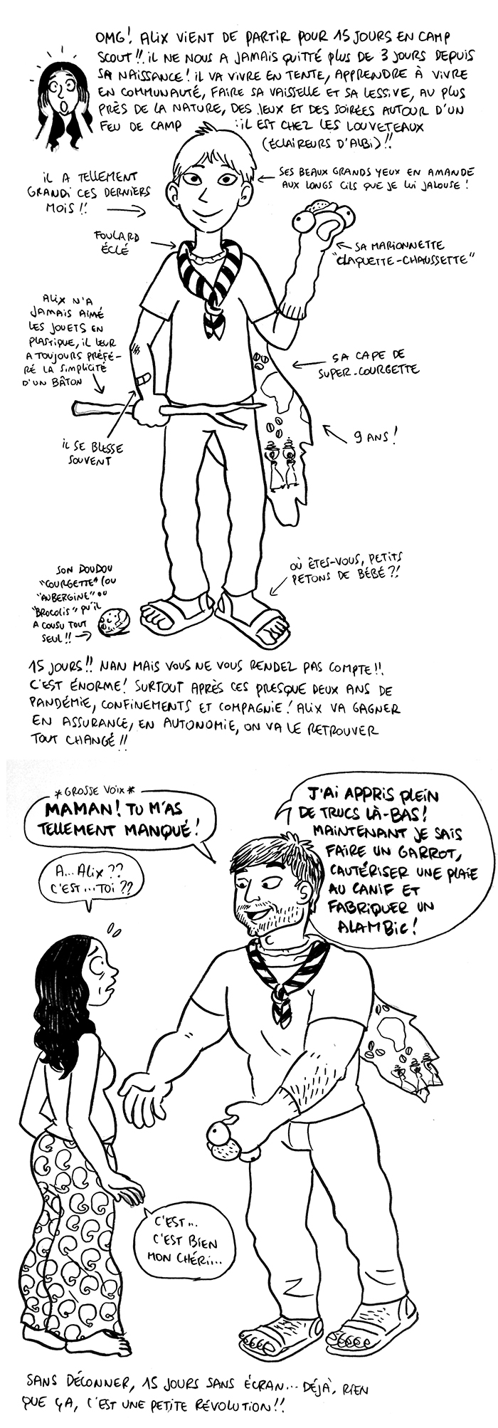 J’ai passé 10 ans dans le mouvement scout unioniste (les protestants) comme éclaireuse et responsable et ça a été un formidable apprentissage de l’autonomie et de la débrouillardise. Je suis sure qu’Alix reviendra avec de super souvenirs de son camp !