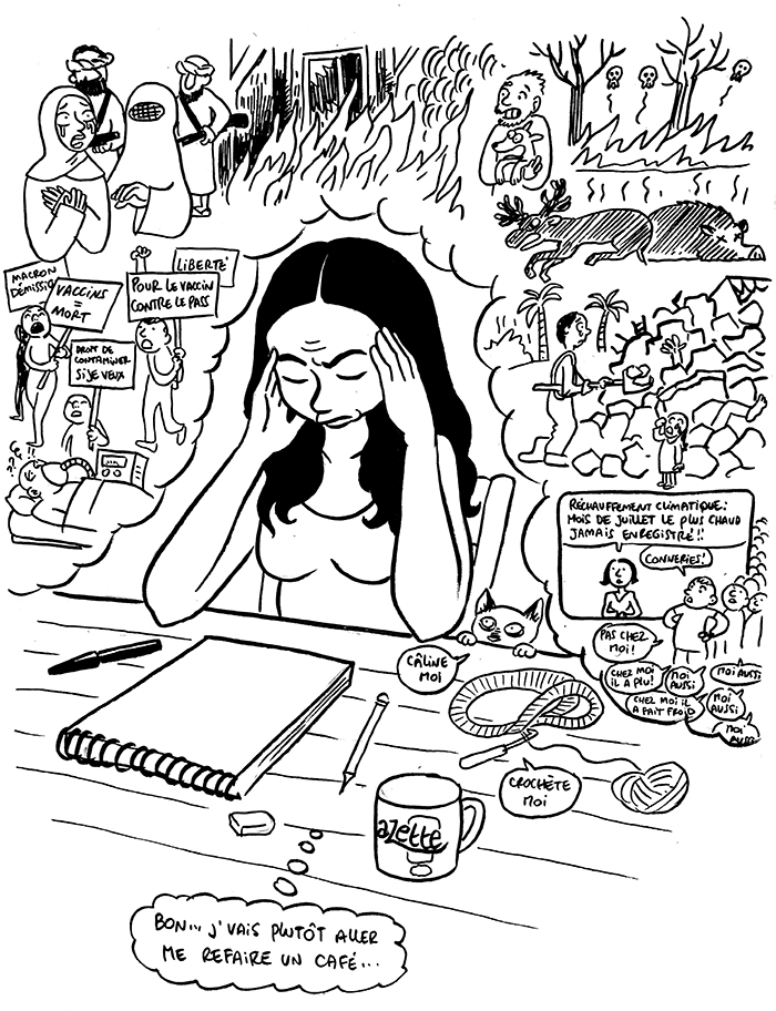 C’est comme à l’époque des gilets jaunes : moi j’étais profondément enthousiasmée par ce mouvement, mais parfois, au milieu, il y avait des fachos. Dans les manifs contre le pass, il y a beaucoup de gens avec lesquels je suis d’accord, et il y a aussi des fans de Philippot, des défenseurs corps et âmes de Raoult… des gens qui pensent et disent que le vaccin est là pour éradiquer les pauvres ou créé par des pédosatanistes. Heureusement ce n’est pas la majorité !!
