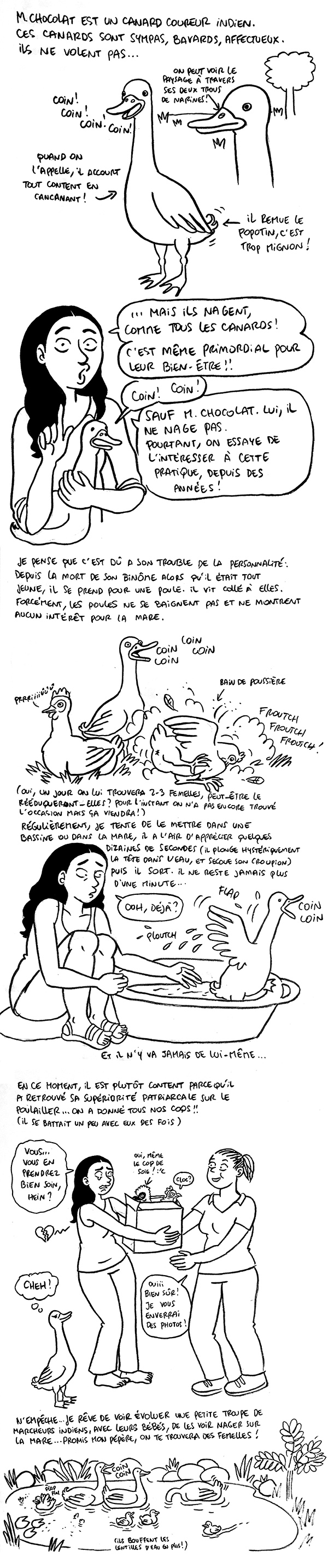 Oui, faut lui trouver au moins une femelle, à ce beau petit canard (j’adore les canards!) et nous raconter comment il se fait a son nouveau statut de canard en couple