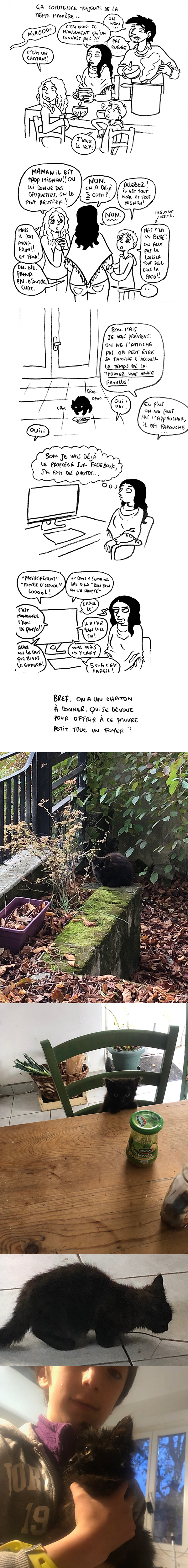 Et l’adorable petit chaton noir, je lui souhaite de vite trouver un foyer. Il est trop craquant, si ça traîne ce sera un déchirement pour les enfants de le voir partir.