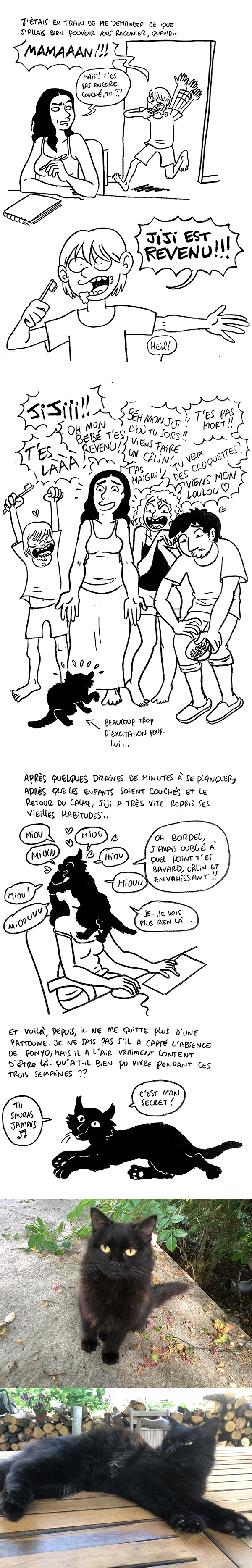 Cool ! Je regardais les photos des refuges dans le Tarn au cas où, mais peut-être que Jiji est pucé et qu’ils vous auraient avertis ? En tout cas, me voilà bien heureuse de son retour !