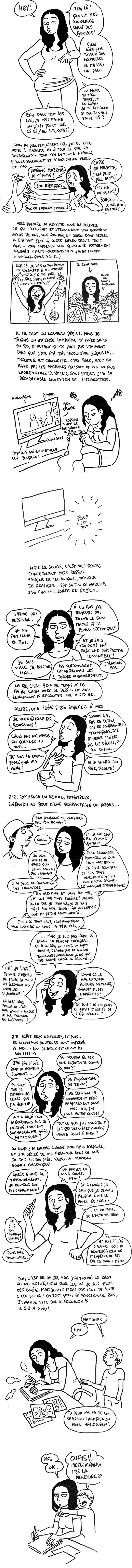 En tout cas, je suis contente que tu te lances dans un nouveau projet qui te motive. Un roman graphique, ça va être super !!! J’avais adoré Sous les Bouclettes. J’ai hâte de lire ce que tu concoctes. Et si tu lances un financement participatif, je serai là.