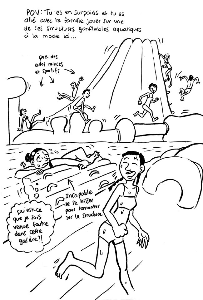 Sinon, j’espère au moins que tes « bouées » t’aident à flotter. Et surtout que les ados ne te confondent pas avec une des parties de la structure flottante ! Hihihihi (aïe aïe patapé !)